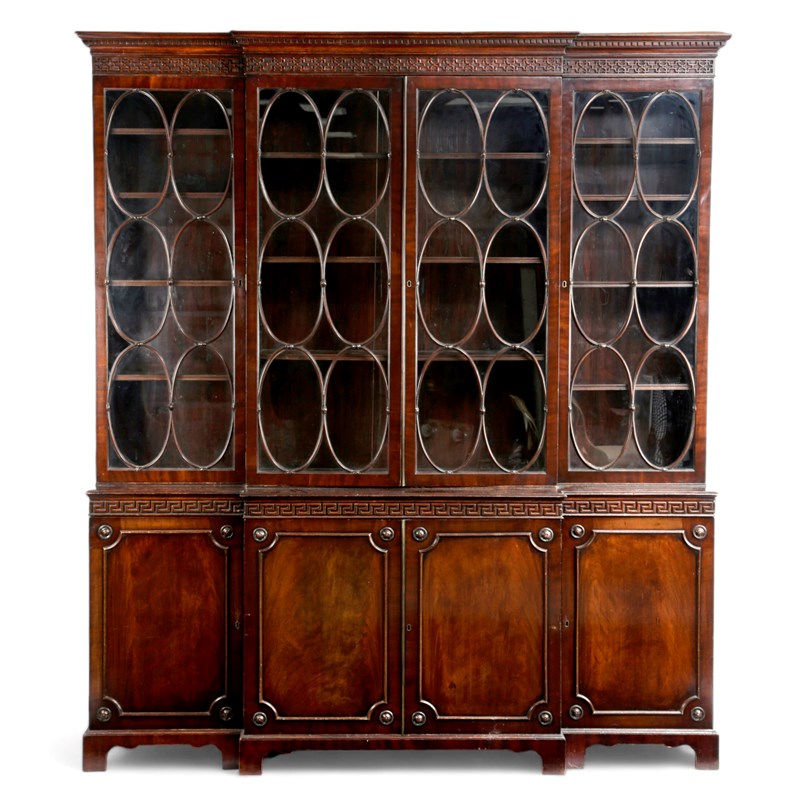 A MAHOGANY LIBRARY BREAKFRONT BOOKCASE