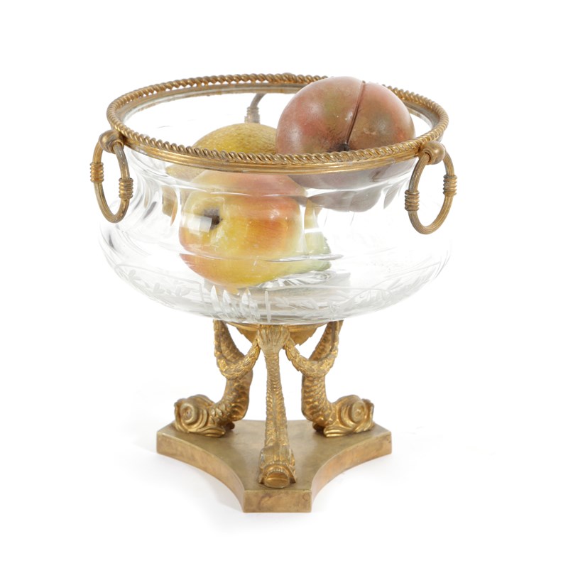 A FRENCH GILT BRONZE AND GLASS BOWL ON STAND