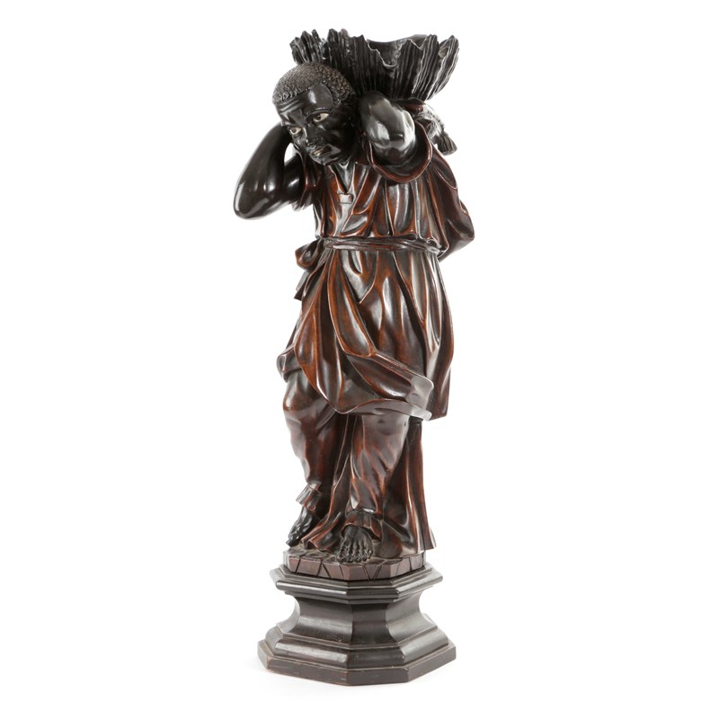 AN ITALIAN CARVED AND EBONISED BLACKAMOOR FIGURE