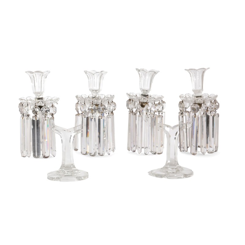 each with faceted twin branches supporting flowerhead nozzles and a drip-pan hung with lustres (2)