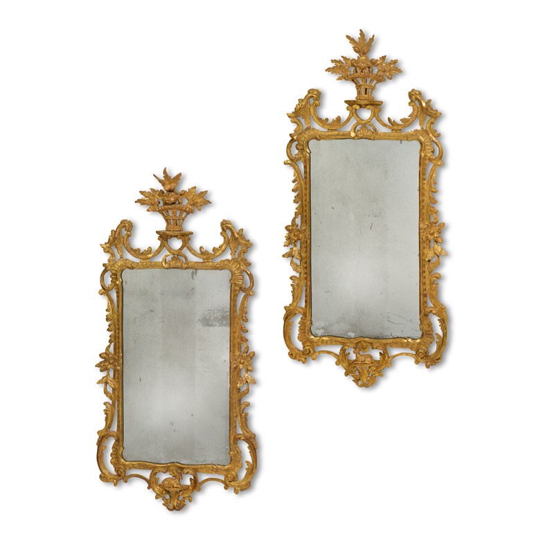 A FINE PAIR OF EARLY GEORGE III GILTWOOD WALL MIRRORS