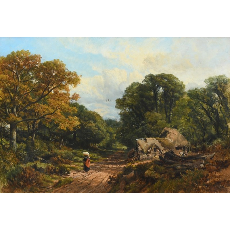 Figure on a wooded lane outside a cottage, Surrey