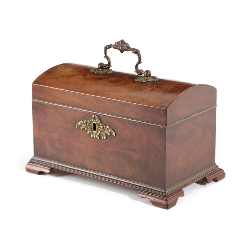 AN EARLY GEORGE III MAHOGANY TEA CADDY