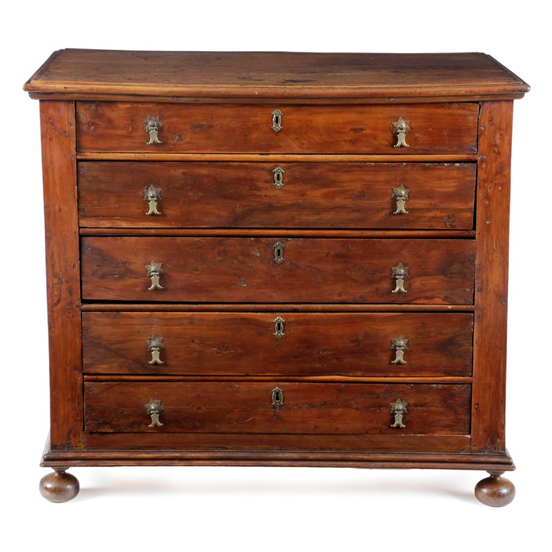 A QUEEN ANNE SOLID YEW AND FRUITWOOD CHEST OF DRAWERS