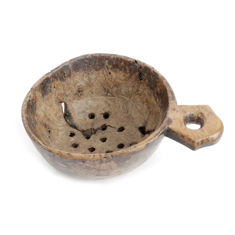 A TREEN BURR WOOD STRAINER