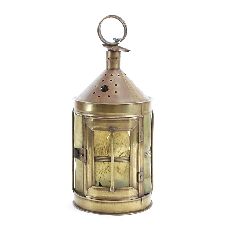 A SHEET-BRASS AND HORN HANGING LANTERN
