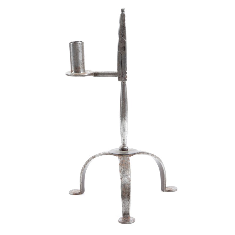 A FINE WELSH IRON TABLE RUSHLIGHT AND CANDLEHOLDER