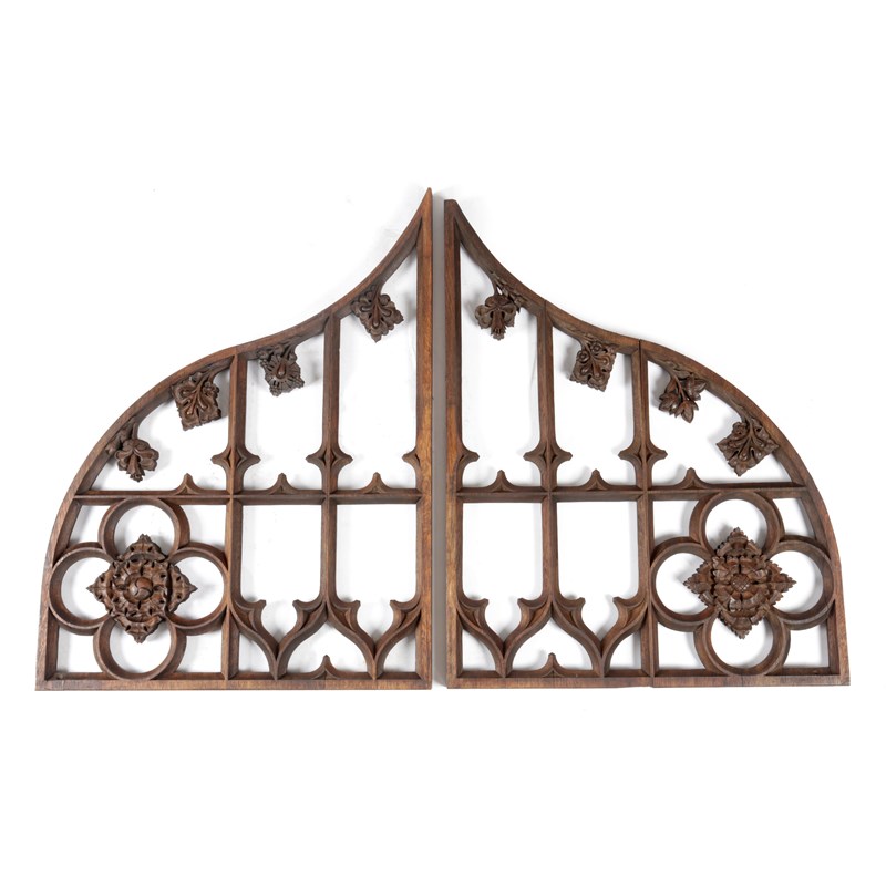 each with open tracery lancets, quatrefoils and trefoils, adorned with carved foliage (2)