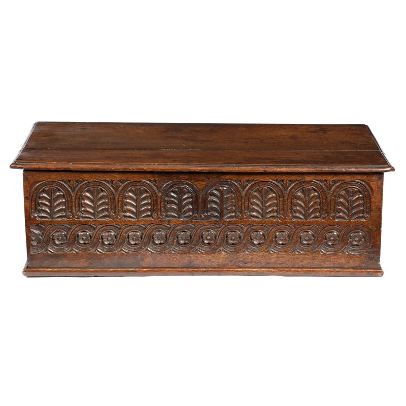 A LARGE JAMES I BOARDED OAK BOX