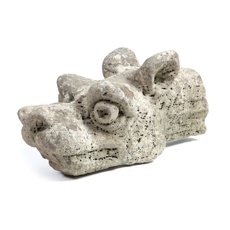 A CARVED LIMESTONE ARCHITECTURAL BEAST'S HEAD