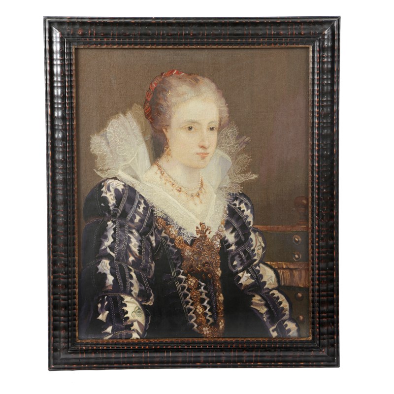 depicting Jean Charles de Cordes and his wife Jacqueline van Caestre, each in a later ripple moulded frame, with a paper label inscribed 'Tapestry picture from the collection of Lord and Lady Walston, of Newton Hall, Cams' (2)