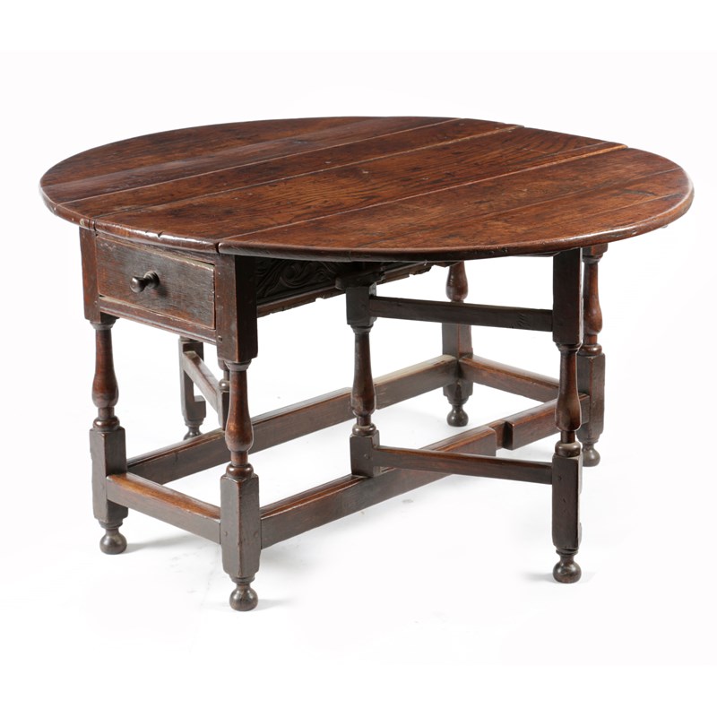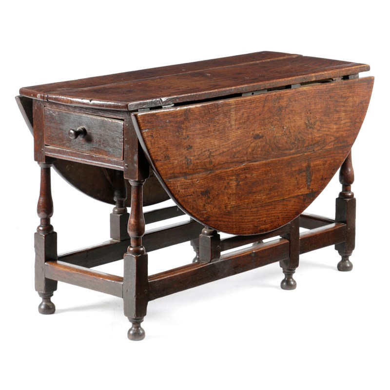 A WILLIAM AND MARY OAK GATELEG DINING TABLE