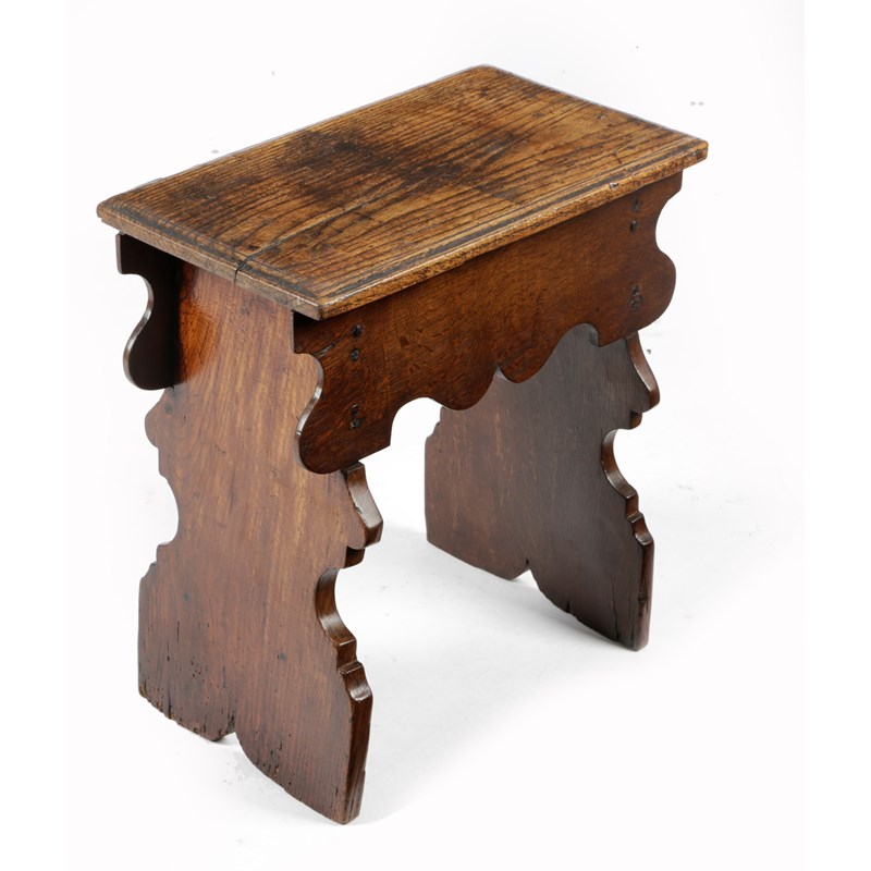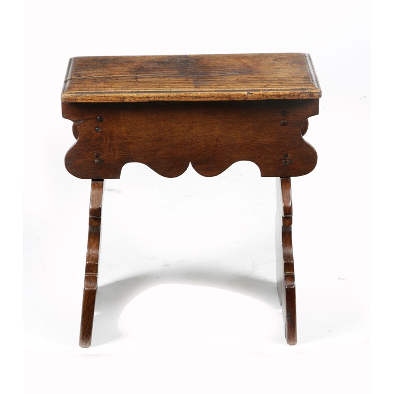 A CHARLES II OAK BOARDED STOOL