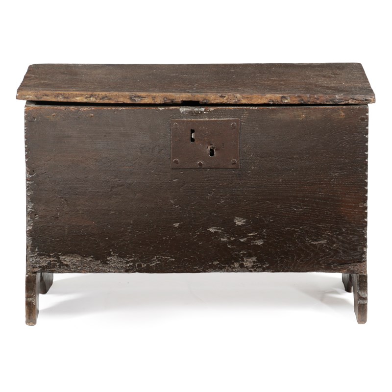 AN ELIZABETH I CHILD'S BOARDED OAK CHEST