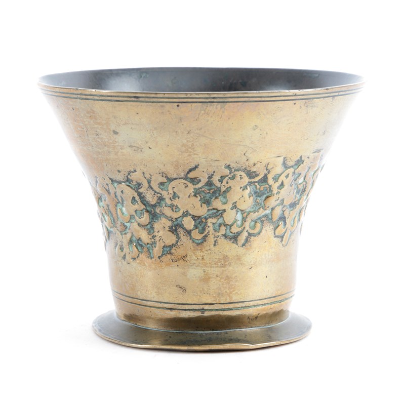 the flared body with a cast band of inverted fleur-de-lys, with two pairs of lines to the base