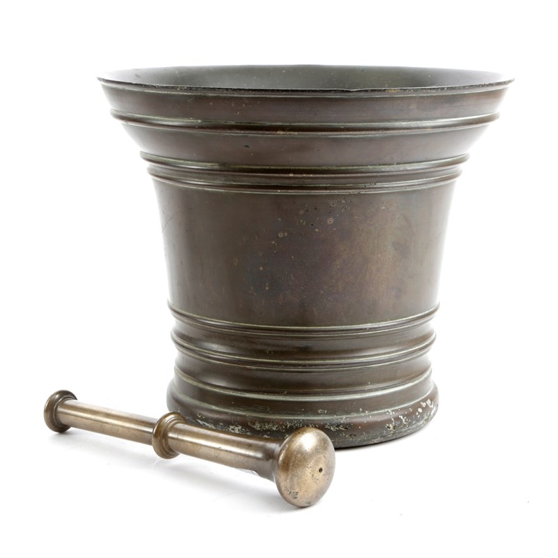 of flared form with moulded band decoration and with a pestle with single knop (2)