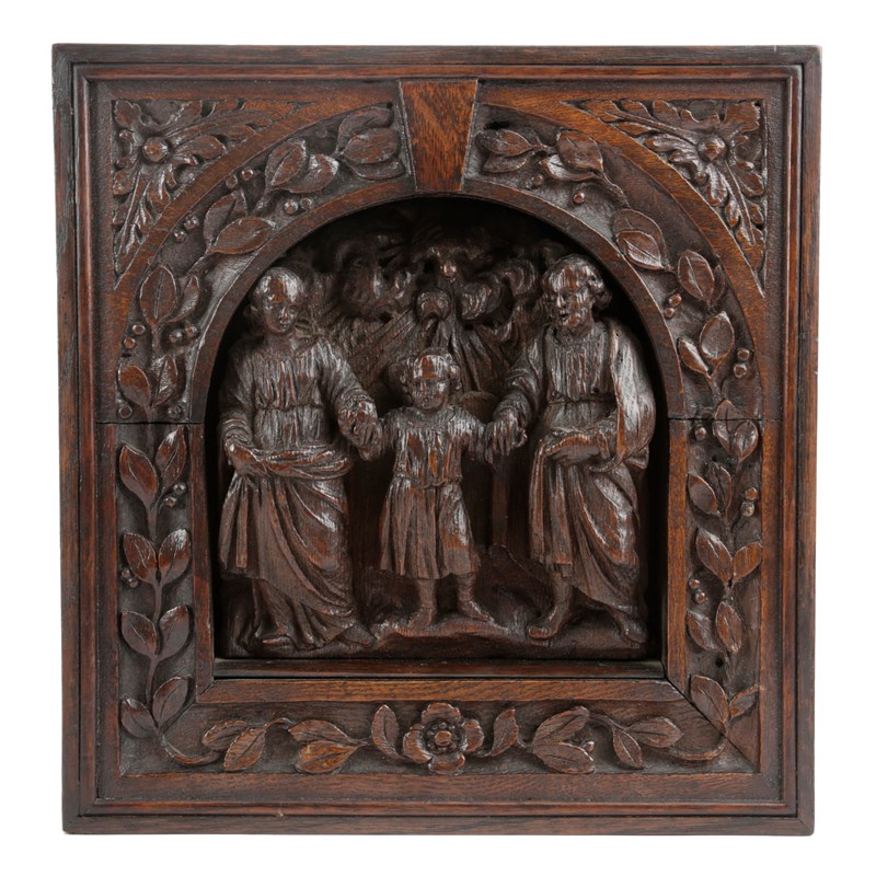 A FLEMISH OAK PANEL OF THE HOLY FAMILY