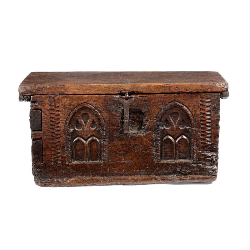 the front carved with a pair of Gothic arches