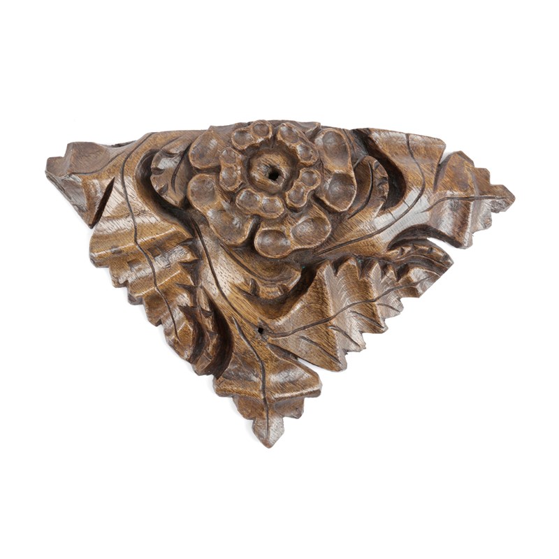 of three-quarter form, carved as a Tudor rose surrounded by foliage