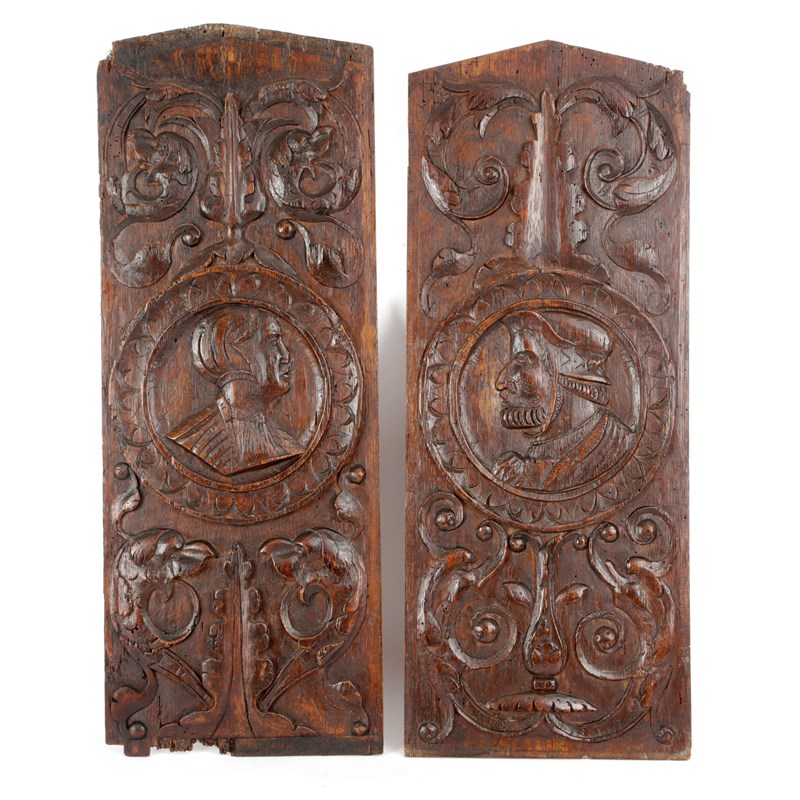 A PAIR OF OAK ROMAYNE-TYPE PORTRAIT PANELS