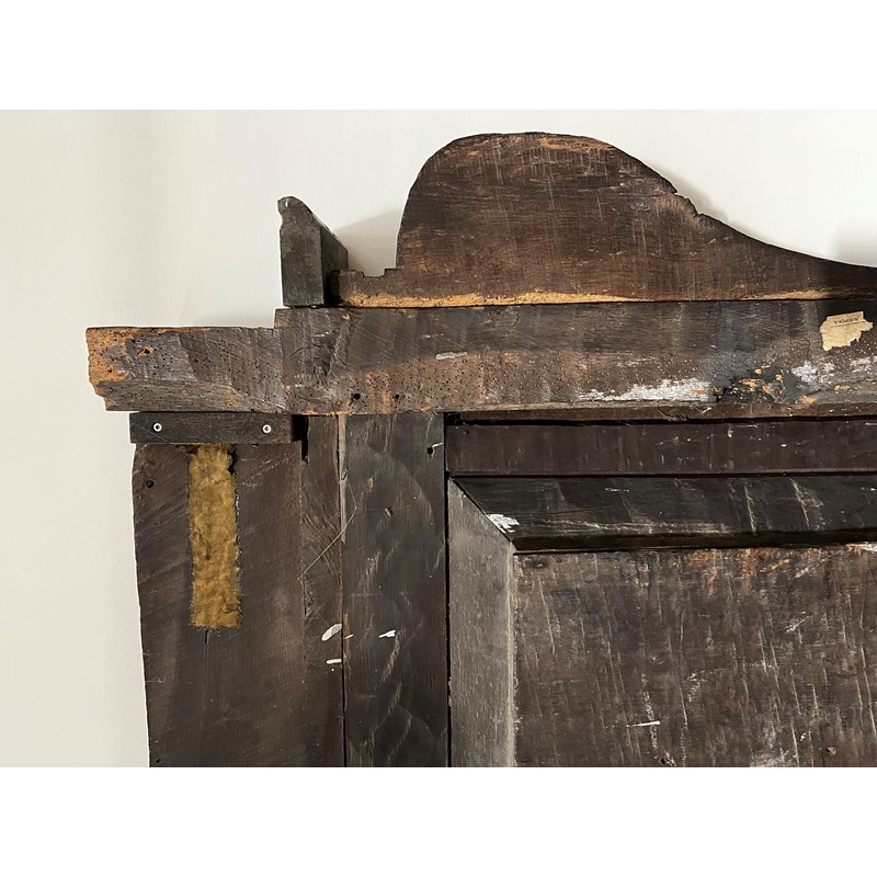 The rear centre of the cornice has a small splice inset – formerly cut to facilitate a house beam? Now repaired. The internal corners behind the end frieze with later blocks into which the end posts sit.