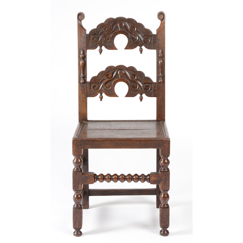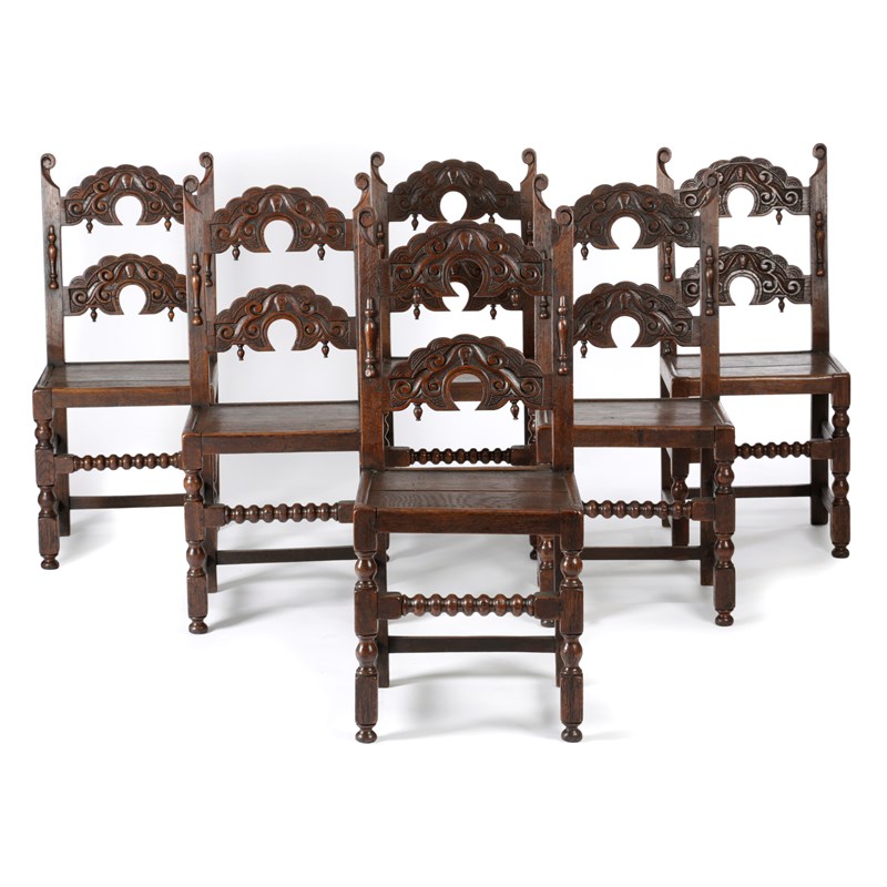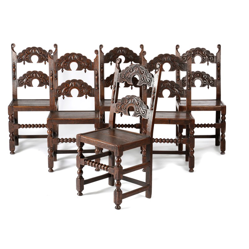 A SET OF SIX CHARLES II OAK BACKSTOOLS