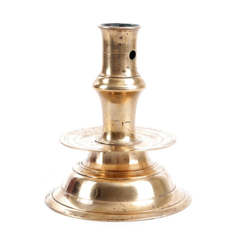 AN UNUSUAL FLEMISH BELL-METAL CANDLESTICK