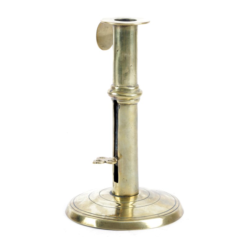 A GEORGE I/II BRASS SLIDE EJECTOR CANDLESTICK