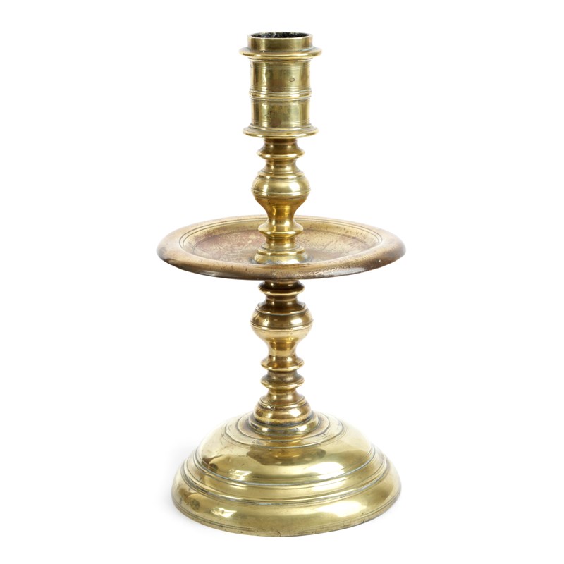 A LARGE DUTCH BRASS HEEMSKERK CANDLESTICK
