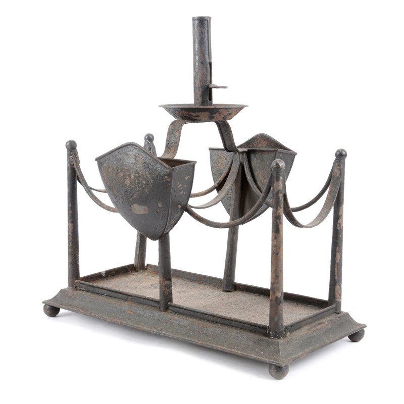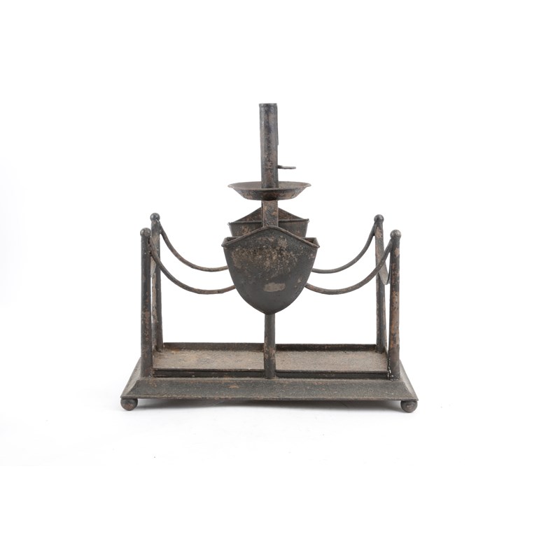 AN UNUSUAL VICTORIAN IRON 'BIDDING CANDLESTICK'