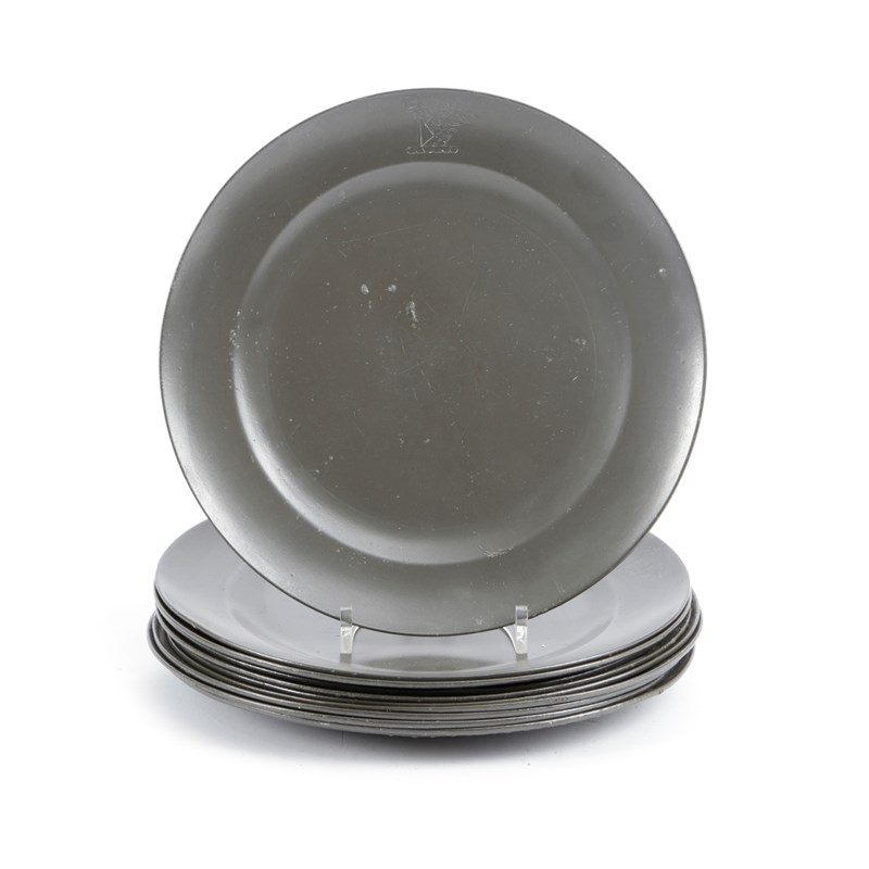each with an engraved crest to the rim and touchmarks to the underside (10)