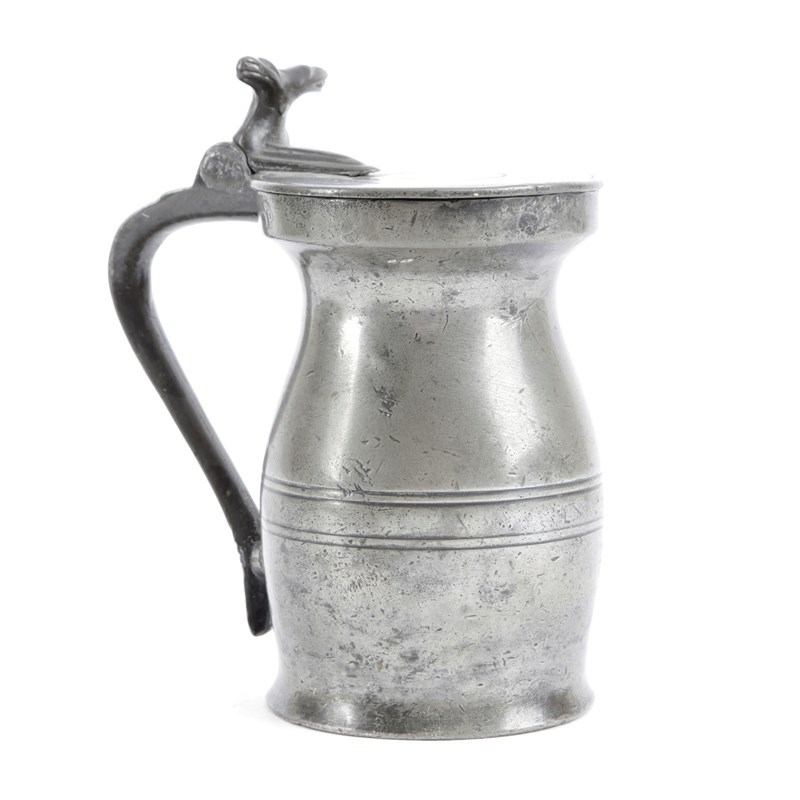 A GEORGE I / II PEWTER O.W.E.S PINT BUD BALUSTER MEASURE