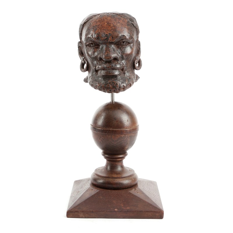 A CARVED OAK PORTRAIT BUST OF AN AFRICAN