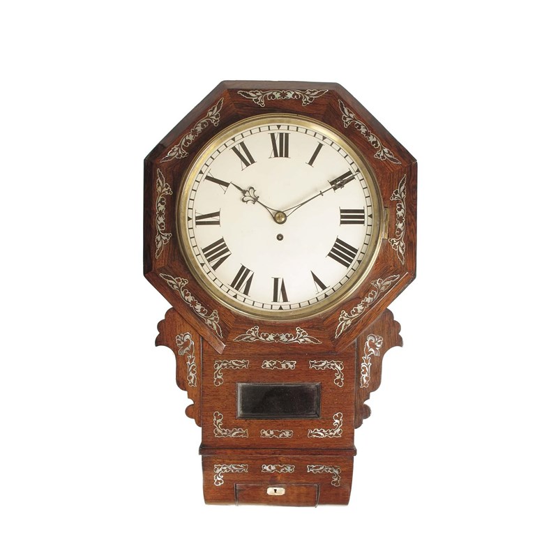 A Victorian rosewood and mother of pearl inlaid octagonal drop dial