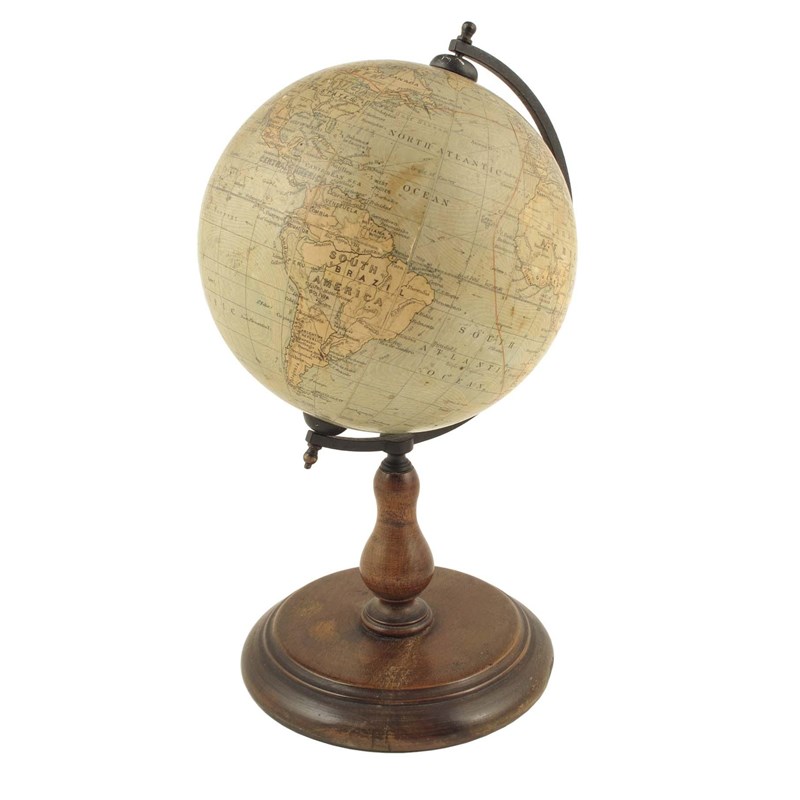 A Phillip's educational terrestrial globe, 6in, on a turned beachwood base, 10.75in (27.5cm) h.
