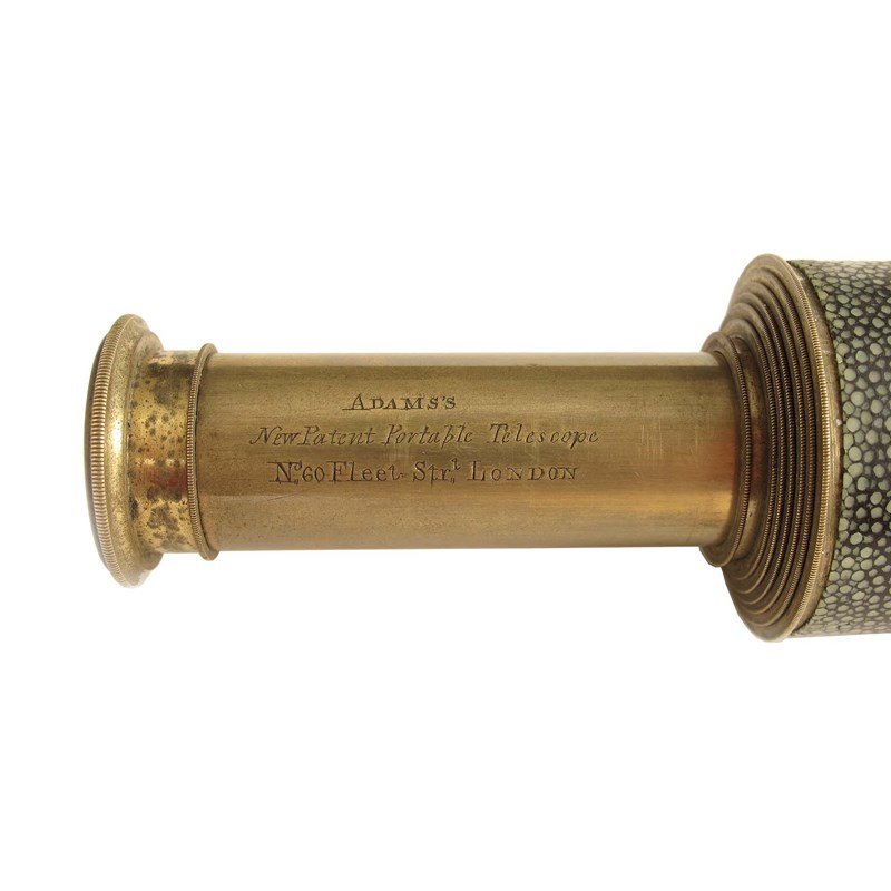 An early 19th century 1.5inch seven draw brass telescope, with shagreen grip, signed ADAMS'S New Patent Portable Telescope No.60 Fleet Strt. LONDON, with end cap and sliding eye piece cover, 4.25in (11cm) l (closed).