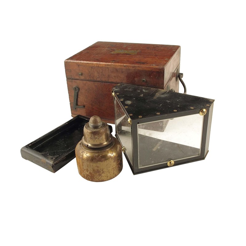 An artificial horizon, signed on the brass plaque A & N C.S.L, in a fitted mahogany box with carrying handle.