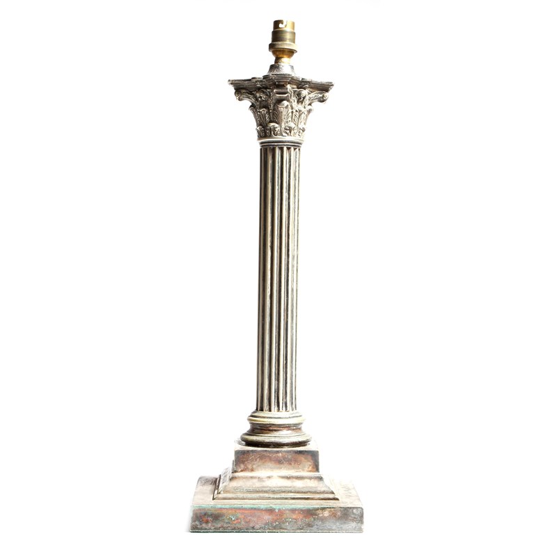 A silver plated Corinthian column table lamp, the stepped base stamped 'G.S', late 19th / early 20th century, 53.5cm high.
