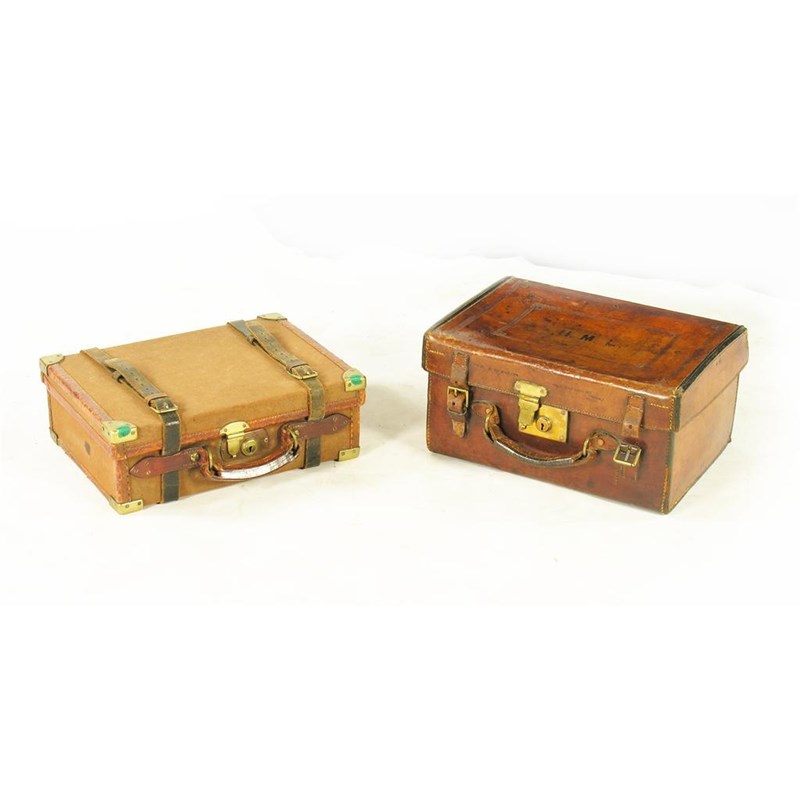 A small leather case by Peal & Co, 487 Oxford Street, London, the lid initialled H.M.L., 16in (40.5cm) w, and a canvas covered and brass mounted cartridge magazine. (2)
