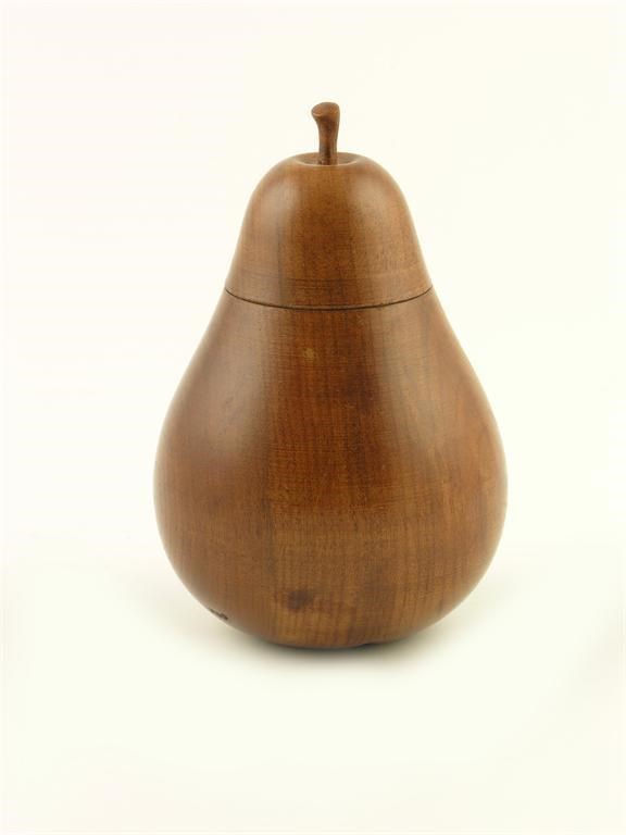 A turned pear shape box, the cover with stalk, 7in (17.5cm) h.