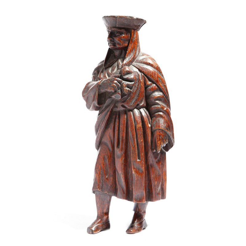 An 18th century carved oak figure, possibly Christopher Columbus, 25.8cm high.