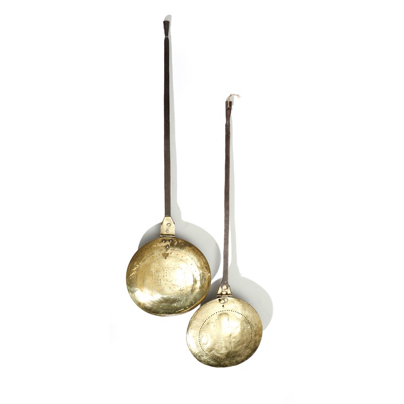 Two similar James II brass warming pans