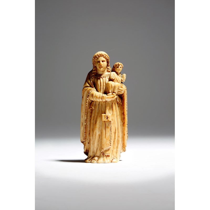 An Indo-Portuguese carved ivory group of the Virgin and child
