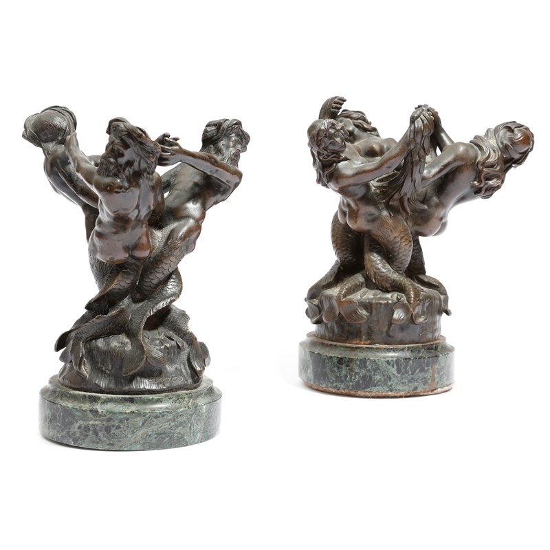 Louis Ernest Barrias (French 1841-1905). A pair of French bronze groups of mermaids and mermen