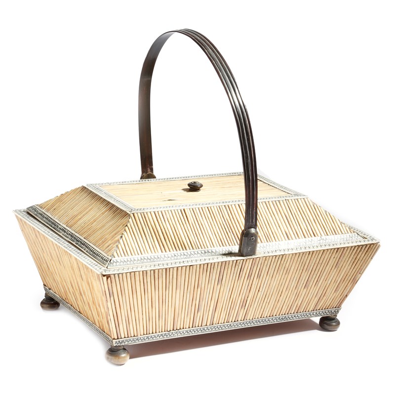 λ A mid-19th century Anglo-Indian sandalwood and porcupine quill basket