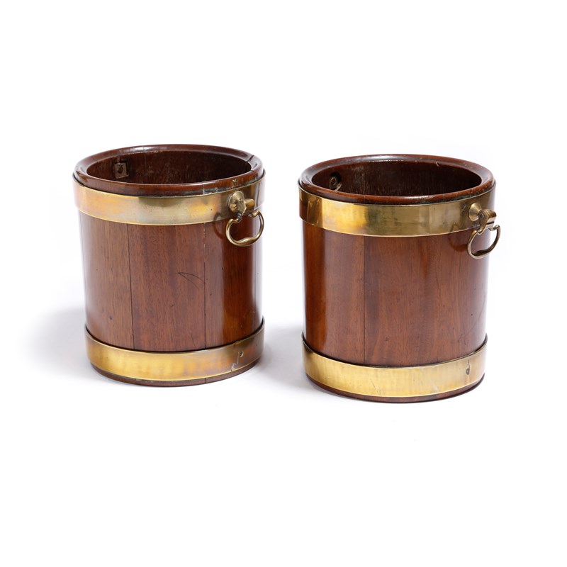 A pair of early 19th century mahogany and brass bound wine bottle holders