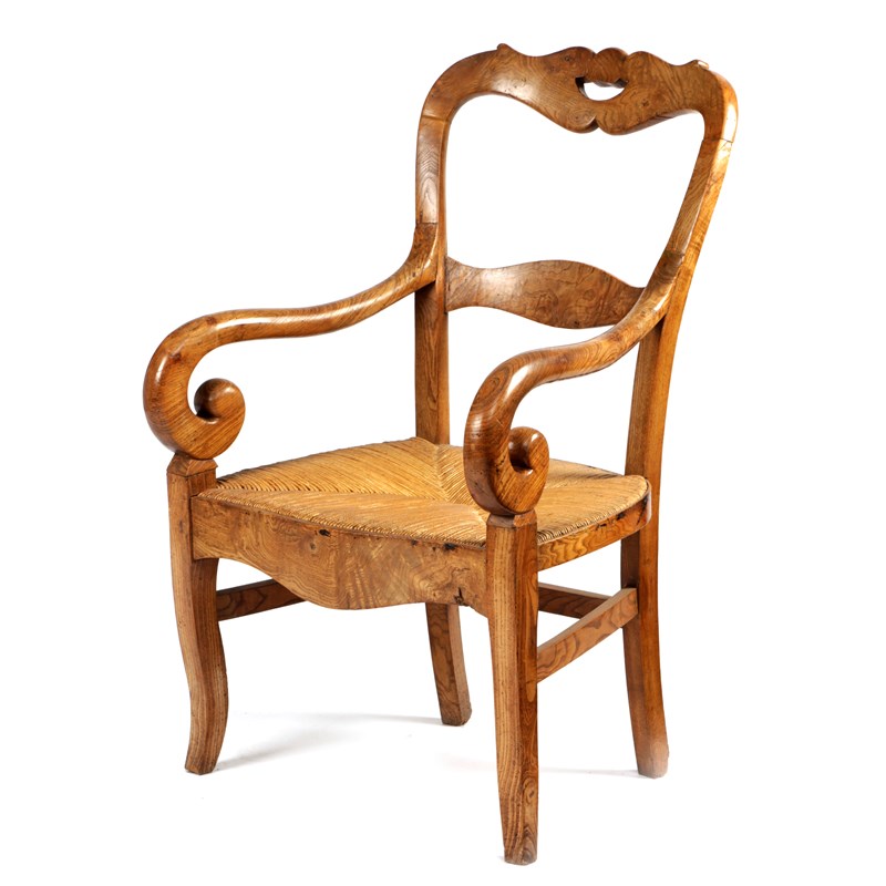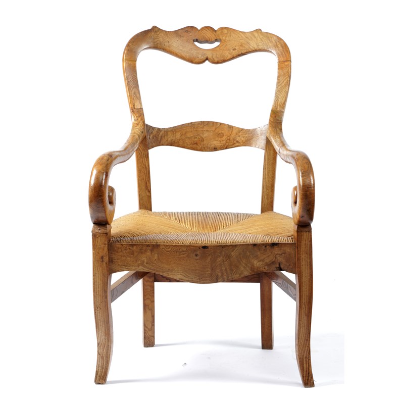 A FRENCH PROVINCIAL ASH ARMCHAIR