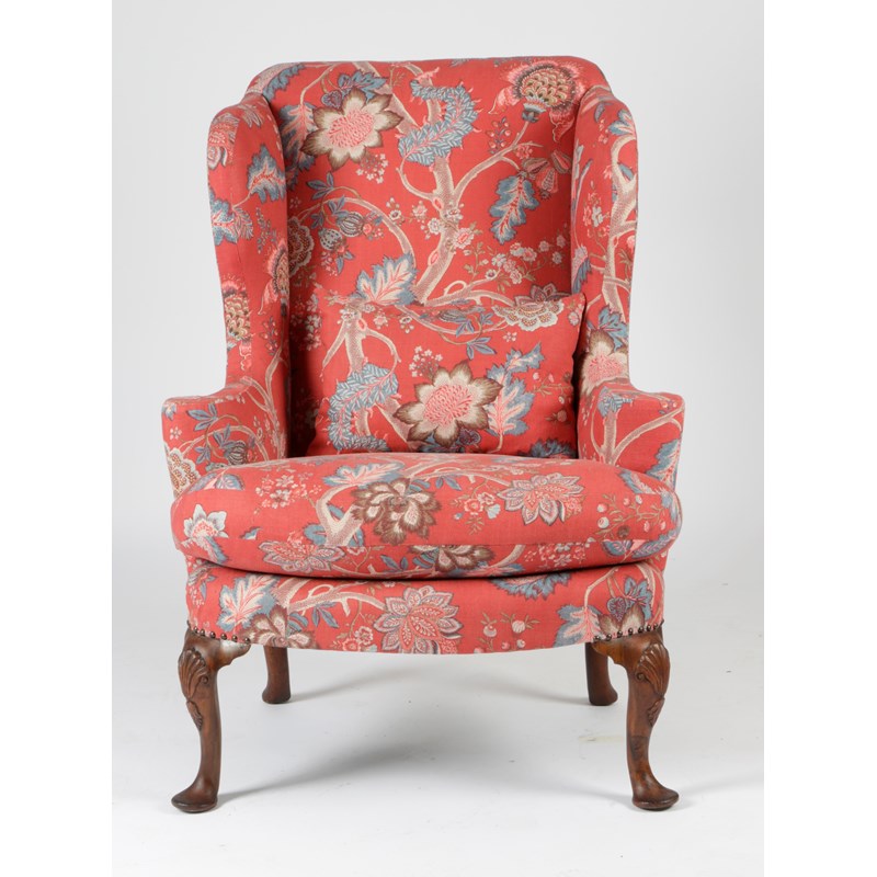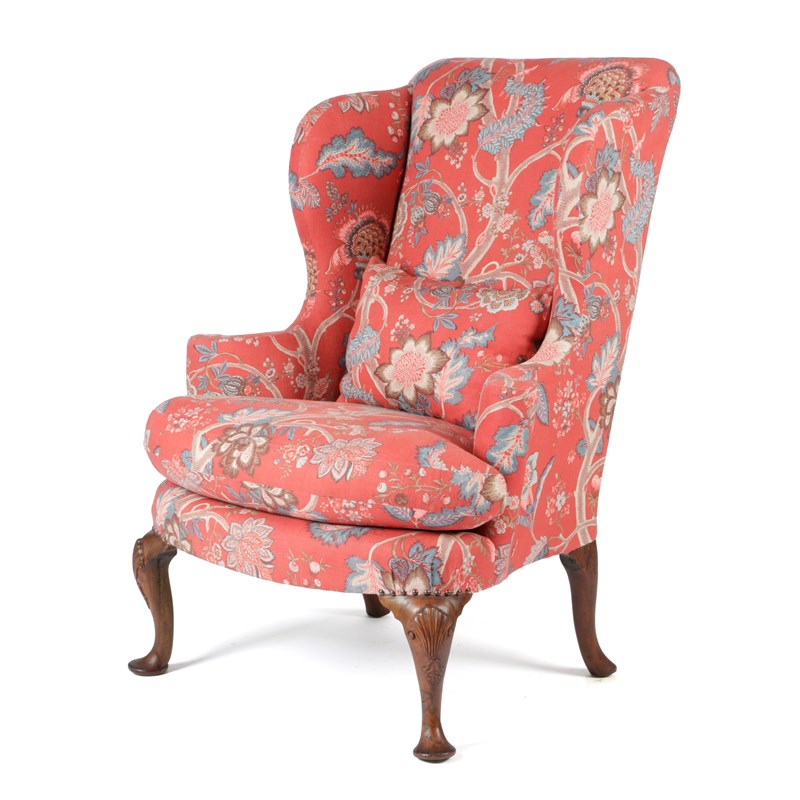 A GEORGE II WALNUT WING ARMCHAIR