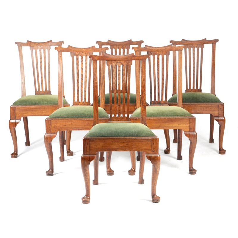 A SET OF SIX GEORGE II ELM DINING CHAIRS