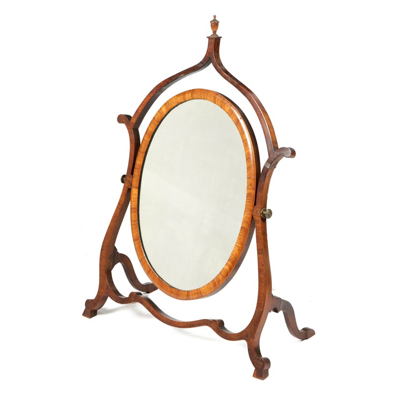 A GEORGE III MAHOGANY DRESSING TABLE MIRROR